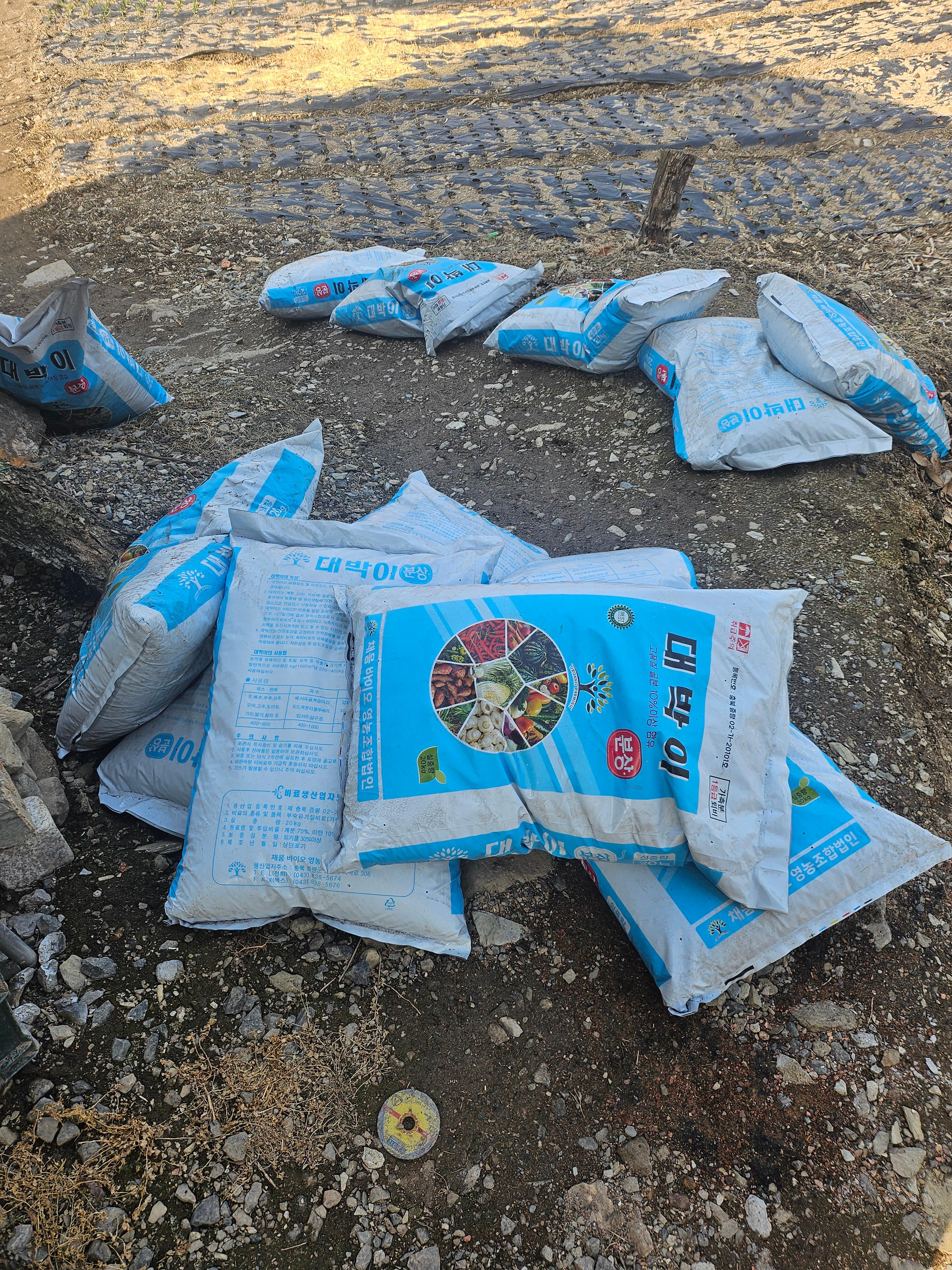 올해 농사에 쓸 계분 100포대..배달이 왔다.